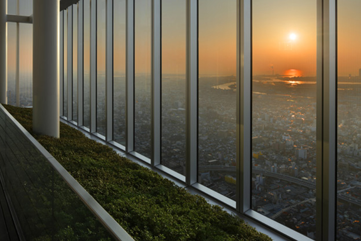 「あべのハルカス」は延床面積が約31万㎡で、鉄道のターミナルと直結し、百貨店・ホテル・オフィスなど近鉄グループの主要事業を集積された立体都市です。