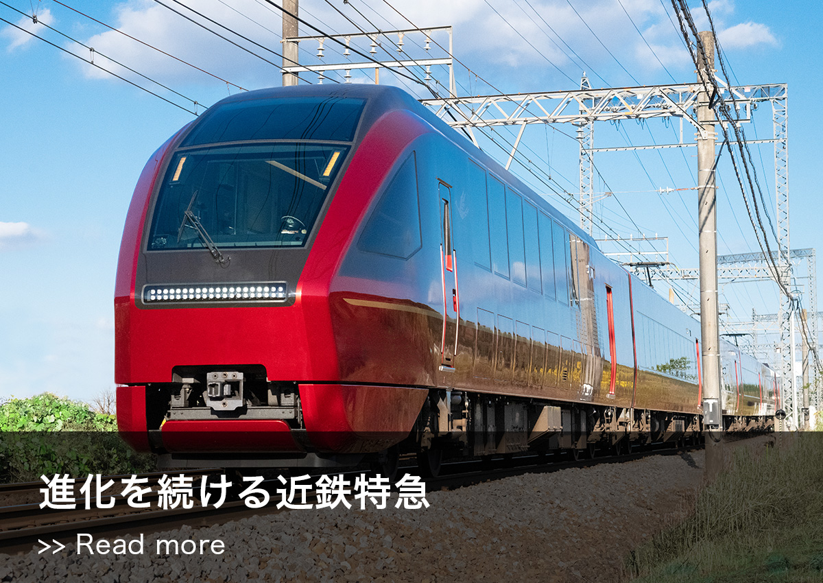 そして、民営鉄道ではもっとも長い路線をもつ近鉄が長年にわたり構築してきた特急ネットワークをお客様のニーズに合わせて、さらに進化しようと開発したのが、観光特急「しまかぜ」でした。「乗ること自体が旅の目的、楽しみとなる列車」をコンセプトとし、アンケート調査などを基に、徹底した利用者目線で開発した近鉄の観光型フラッグシップ車両です。人口が減少する時代に伴い、特急の利用客も減少することが見込まれますが、特急料金を安くするのではなく、車内サービスを向上し、付加価値に見合う料金を設定する方針を掲げたのです。2013年(平成25年)3月、大阪難波-賢島間、近鉄名古屋-賢島間※をそれぞれ1日1往復する新型観光特急「しまかぜ」を運行します。運行開始から乗車人数は当初の予想を大幅に上回り、予約が取りにくいほどの人気を博したのです。