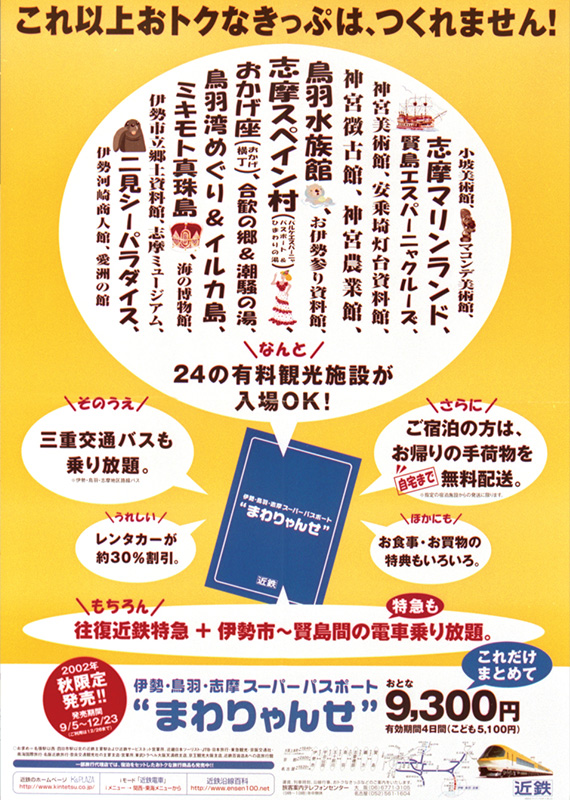 | 2002 (平成14)年 | 9月 | 「伊勢・鳥羽・志摩スーパーパスポート“まわりゃんせ”」発売開始 |