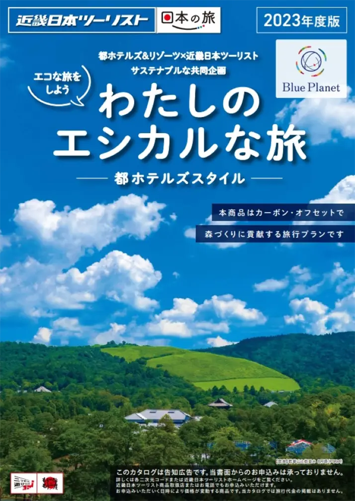 ㈱近鉄・都ホテルズは、2022年6月より、近畿日本ツーリストと共同で、旅行中の移動・宿泊に伴って発生する二酸化炭素(CO2)などの温暖化ガスを「カーボン・オフセット」の仕組みを利用してオフセット(排出量を相殺する・埋め合わせる)することで、地球環境を守ることに貢献する旅行プランを発売しました。