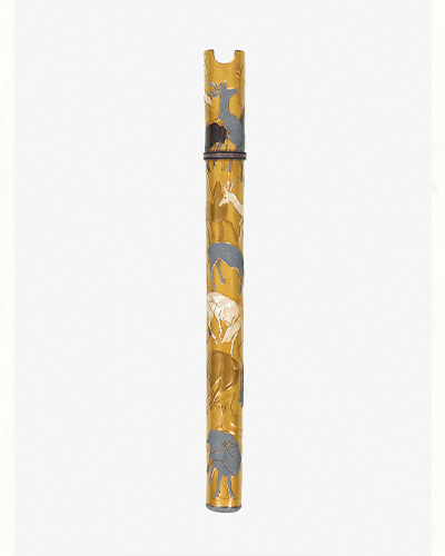 Designated Important Cultural Property FLUTE CASE WITH DESIGN OF DEER, MAKIE LACQUER, PEWTER AND MOTHER-OF-PEARL INLAYFLOWERS IN VASE