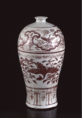 中国の元・明時代には、鮮やかな彩りが施される陶磁器や細密に文様があらわされる彫漆・螺鈿などの漆器において工芸技術が高度に発達し、文様の種類も飛躍的に増えます。