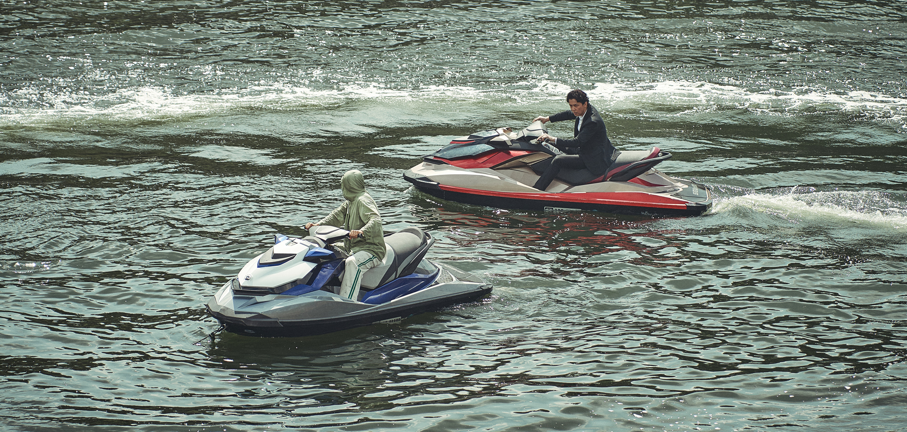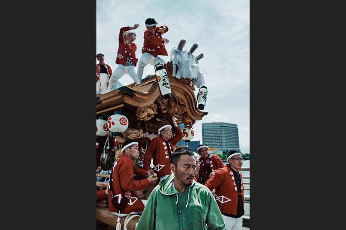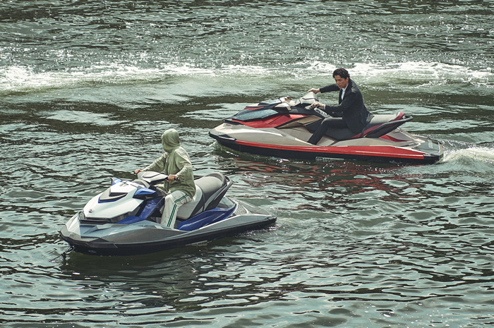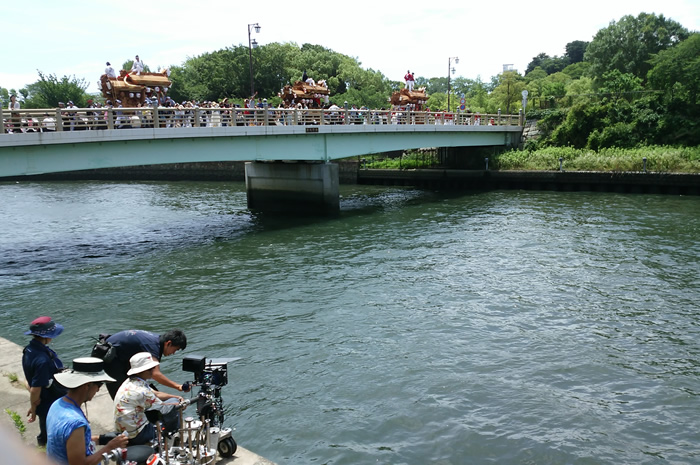 在中之岛 堂岛川,利用水上快艇进行了惊心动魄的动作摄影。这里举行的乘船观光等游览活动,可以欣赏到不同于平时的大阪风光。