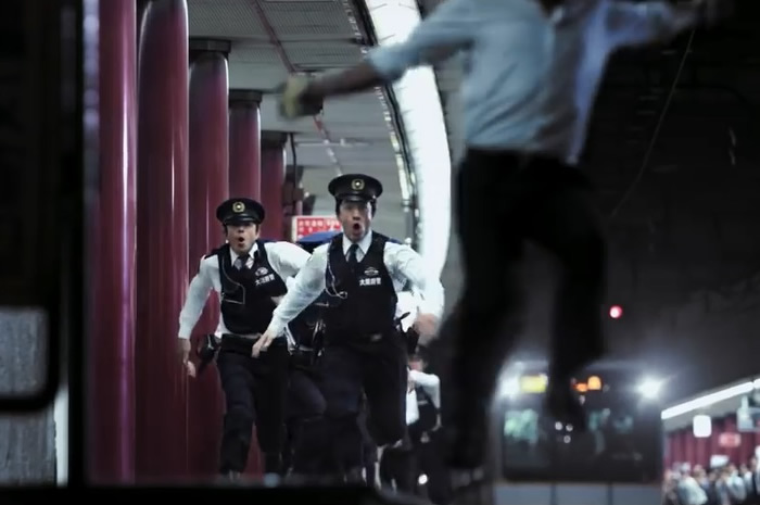 近铁大阪上本町站,以近铁百货店上本町店为首,周围有着由大阪新歌舞伎座和39家店铺构成的“上本町YUFURA”、大阪喜来登都酒店等各种设施。车站1天的人流量多达约7万人。由于白天不能拍摄,因此在末班车过后到始发车的这段时间里,拍摄了男主角逃跑的场景等。拍摄共进行了3天,包括摄影组人员和群演在内,3天里共有约1000人参加。
