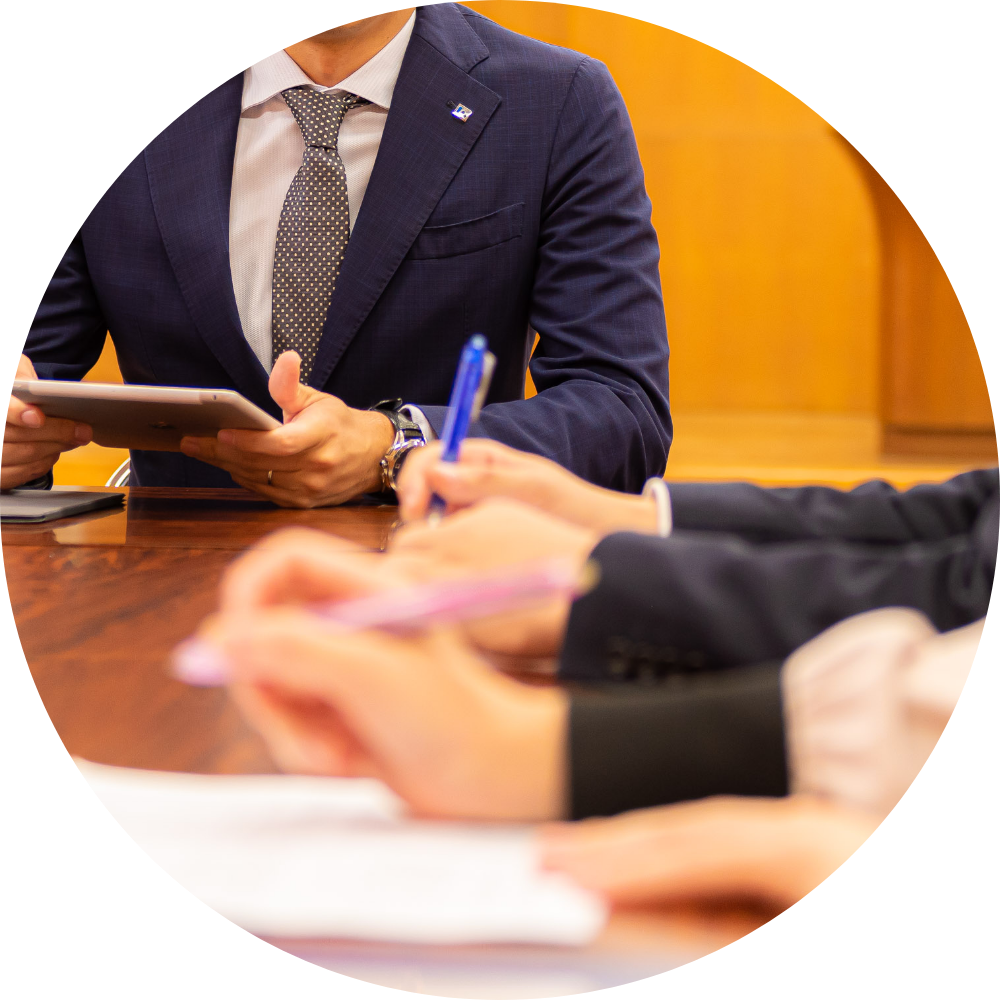 新入社員研修後の配属は、本人の希望や適性を考慮して決定するため、新入社員研修中に人事部と面談を行う機会を複数回設けています。面談を通して、今後のキャリアプランや、自身の強み・今後伸ばしていきたい点などについて、本人とじっくり対話します。また、配属後も定期的に面談や研修を実施し、悩み・課題の共有や目標設定を行うなど、継続して成長できるようフォローします。