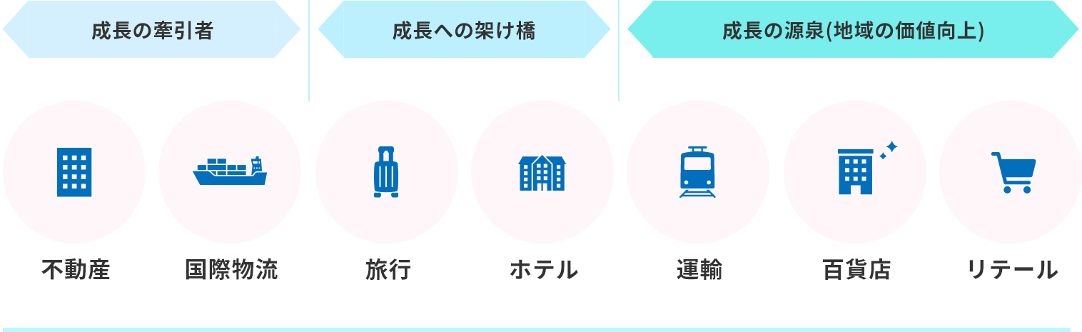 - 大阪の新しい都市核・国際観光拠点機能の形成が見込まれる夢洲など、大きなポテンシャルを持つ大阪ベイエリアにおける開発を将来のグループ成長につなげ、事業領域の拡大を推進します。