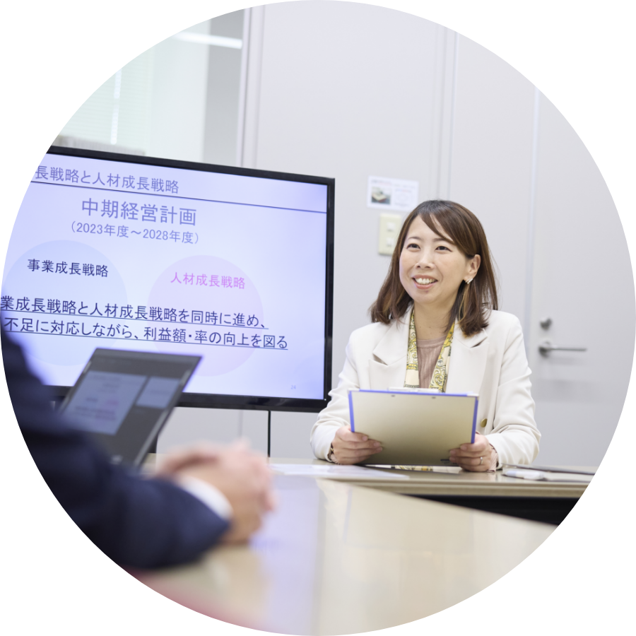 バックオフィス部門の経験のほうが長いため、私にとってのお客様や取引先は社内の従業員となる場合が多いです。そのため、出向先の従業員に信頼されることや、目に見える貢献をすることを意識して仕事に取り組んでいます。その結果、出向先の社員やパートタイマーの方から、「ありがとう」と言ってもらえることが一番のやりがいです。