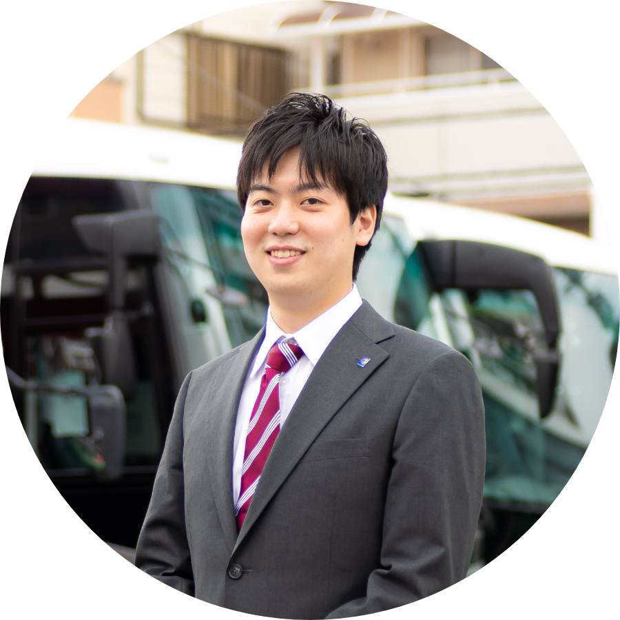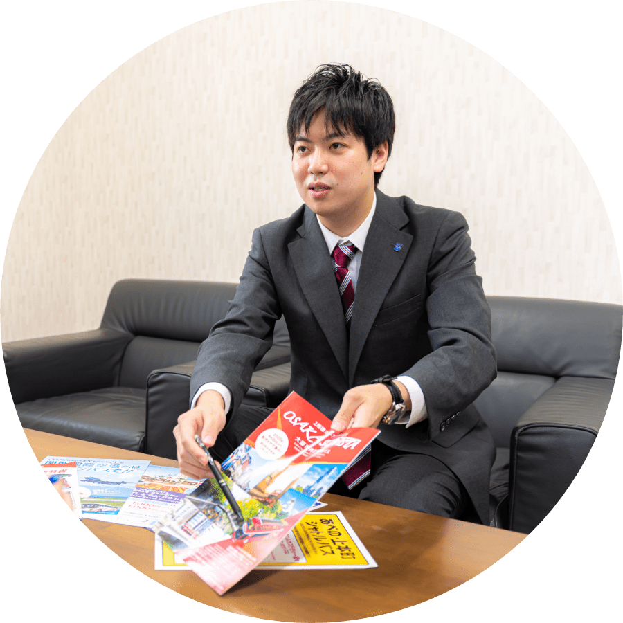 現在は近鉄バス株式会社の乗合営業課に所属しています。乗合営業課とは、路線バスや高速バスなどいわゆる「乗合バス」を運営している部署です。その中で私が主に担当している仕事は、広告宣伝業務と契約輸送業務です。広告宣伝業務では、ホームページやSNSを活用したり、チラシやフライヤーを制作したりして、近鉄バスの魅力を発信しています。契約輸送業務では、近鉄バスが受託している自治体のコミュニティバスやスクールバスの運行に関する日々のデータ収集、運休・車両入れ替えの対応などを行っています。