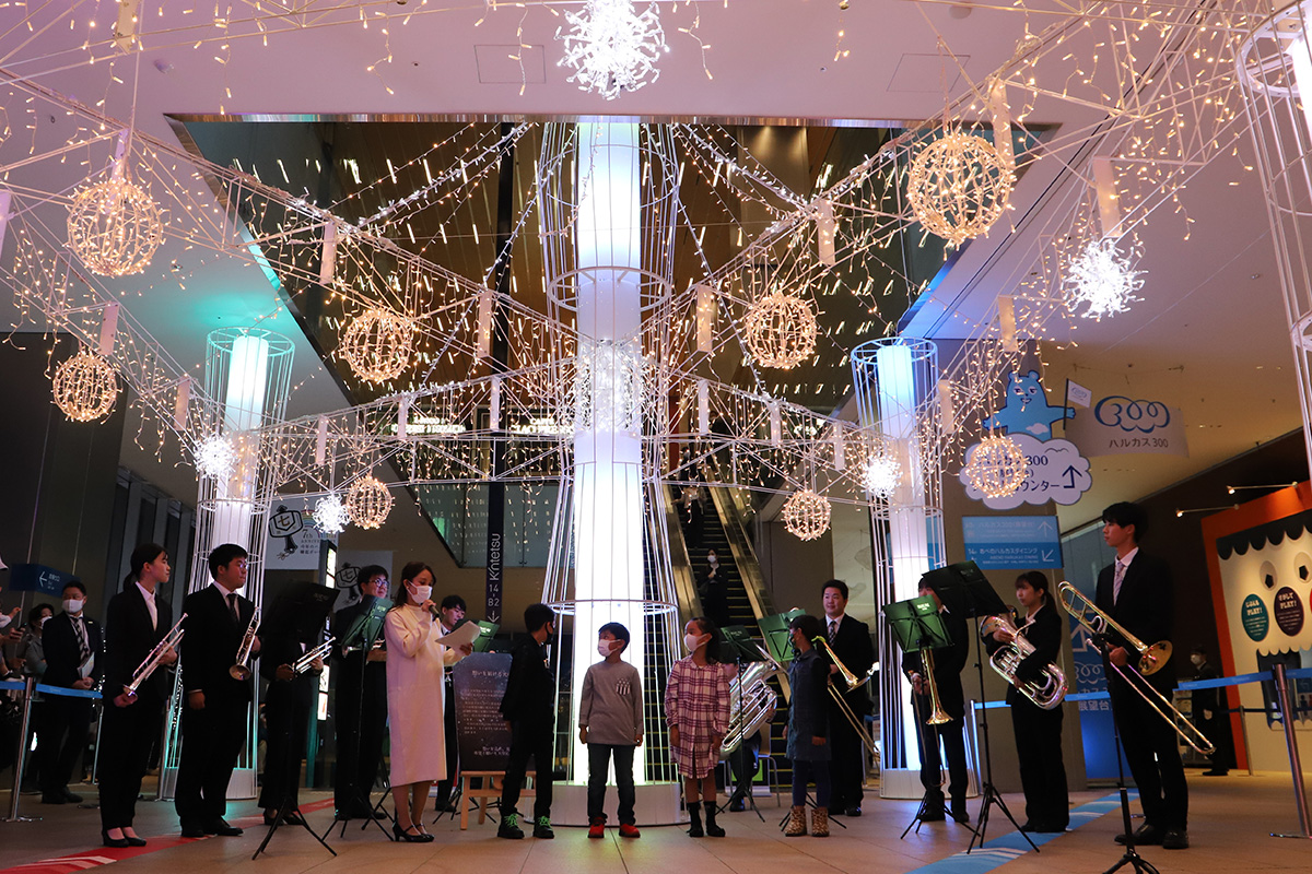 11月1日に行われた「あべのハルカス 天空のイルミネーション2021」点灯式初日の11月1日には、16階ロビーで天空のイルミネーションの点灯式が開かれ、地元の子どもたちの掛け声に合わせて点灯を開始しました。