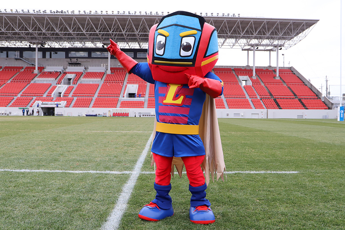 (右が飯泉ゼネラルマネージャー)花園近鉄ライナーズは2022年1月開幕のラグビー新リーグ「ジャパンラグビーリーグワン」に合わせ、ロゴタイプ・エンブレム・マスコットキャラクターを刷新しました。22日は、新マスコットキャラクターの「LINER MAN(ライナマン)」が初登場。ライナマンは、近鉄特急の「ひのとり」をモチーフに、力強いヒーローをイメージし、誰からも愛されるキャラクターを目指しています。