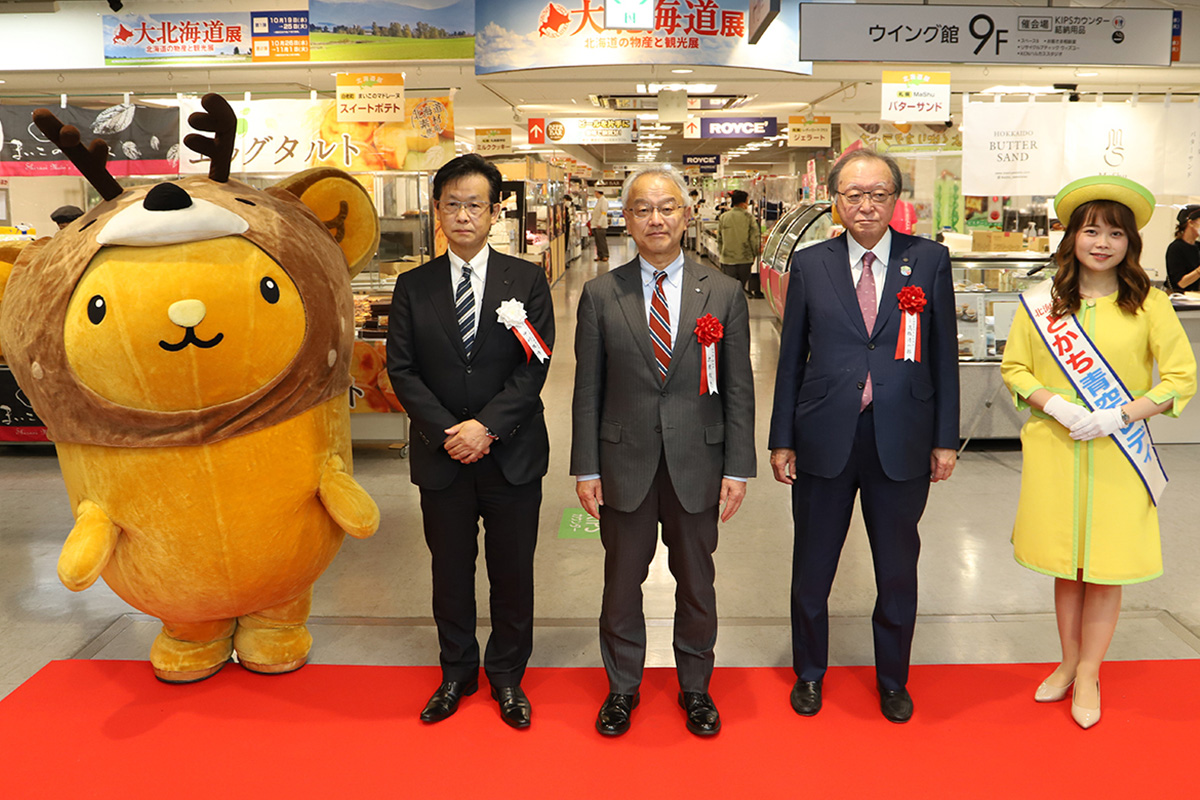 土屋副知事は「関西圏初となる『北海道どさんこプラザ』のオープン以来、たくさんのお客様においでいただきまして、あらためて北海道産品の魅力、そして関西の方々の北海道に対する力強い支持を感じました。今回の『北海道展』は北海道庁認定の物産と観光展で、第1回目となります。どさんこプラザの成功を契機に近鉄百貨店様がこうして1回目の開催をと申し出がありまして、私どもとして開催をさせていただきました。北海道と大阪の絆を益々深めるきっかけになればと思っております」とあいさつしました。