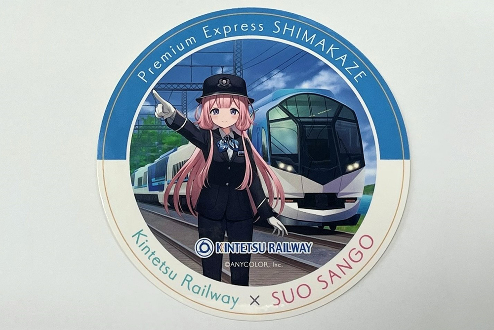 志摩スペイン村の最寄り駅である近鉄鵜方駅では、「周央サンゴ」さんと「観光特急しまかぜ」が描かれたステッカーを配布。「周央サンゴ」さんによる車内アナウンスや、駅に設置された等身大パネルなども楽しめます。